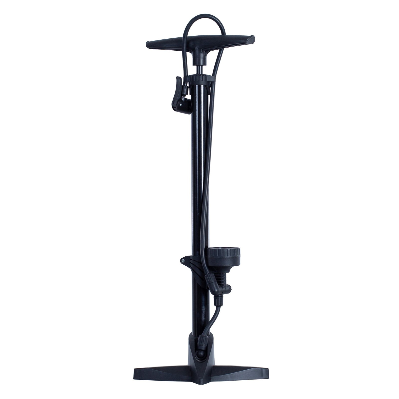 Bomba de pie estable que incluye manómetro en la parte inferior del mismo para ver la presión que se desea alcanzar.