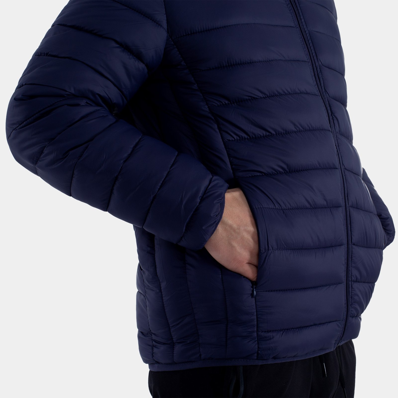 Chaqueta sin marca, confeccionada en 100% poliéster. Diseñada con dos bolsillos laterales con cremallera invisible y dos interiores.