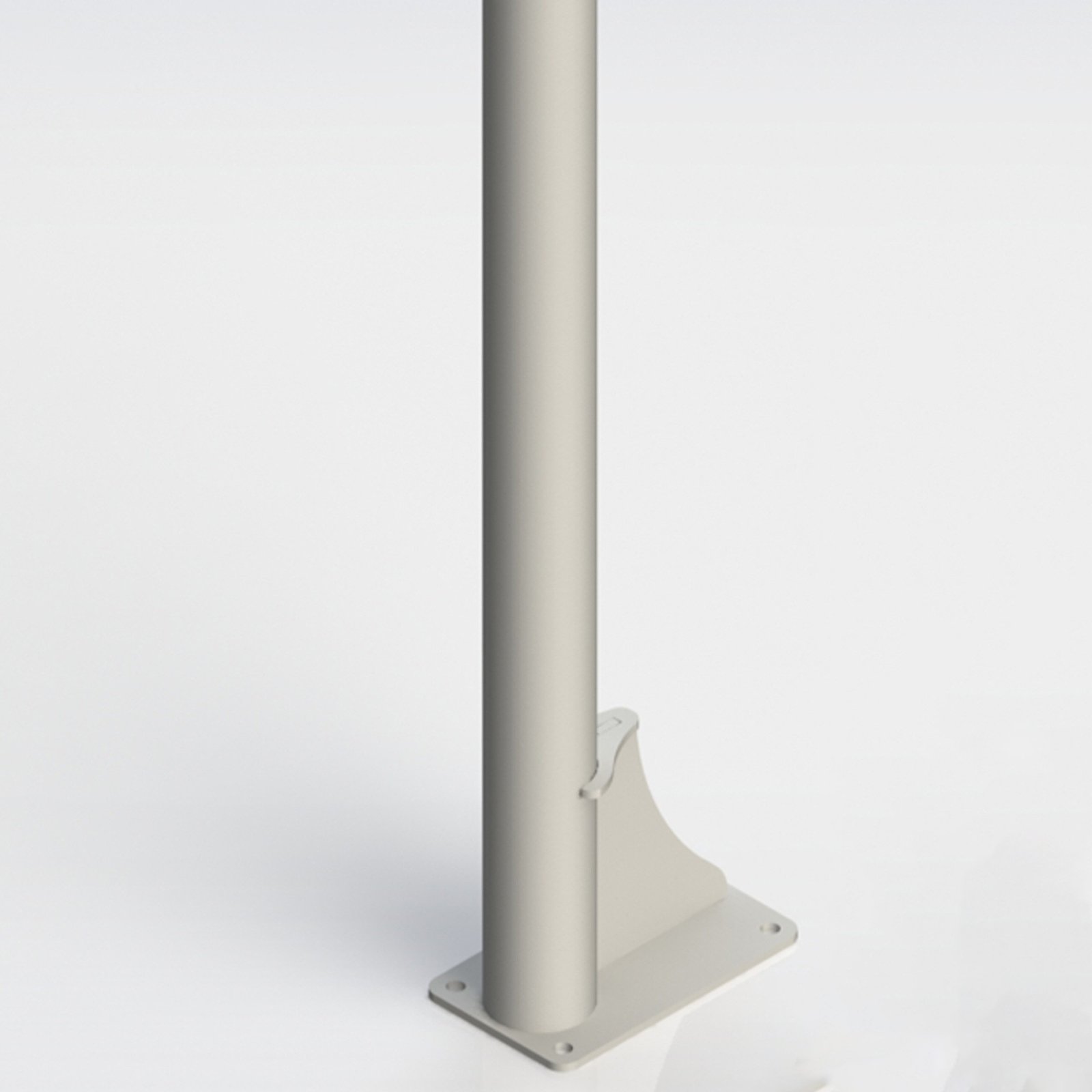 ANCLAR SIEMPRE AL SUELO. Canastas de sección redonda para empotrar al suelo mediante una base de anclaje (incluida). Ideal para pistas deportivas de exterior. Vuelo canastas. Baloncesto 1,65 mts. Contiene doble sistema de tuercas de nivelación, tanto en soporte de tablero como en base de anclaje, incorpora también dos tirantes superiores de estabilización a las esquinas del tablero. En baloncesto incluye también dos tirantes inferiores para empotrar o atornillar al suelo. Incluye además de la base de anclaje aro macizo, red antivandálica y tablero metálico perforado de 2mm.