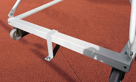 Canastas con dos patas fijas y dos ruedas de nylon que junto al carro que se suministra y que se coloca en el frontal de la misma, permite su traslado a otra zona del campo. Las patas fijas impiden la movilidad de la canasta una vez colocada, pero es imprescindible la colocación de un contrapeso para impedir el vuelco de la misma. Posibilidad de suministrar a mayores sistema se seguridad para atornillar al suelo.Contiene un sistema de tuercas de nivelación en el soporte de tablero e incorpora también dos tirantes superiores de estabilización a las esquinas del tablero y otros dos inferiores a los fondos de la base con ruedas. Ideal para pistas deportivas de exterior o interior. Vuelo canastas 1,65 mts. (No recomendable para zonas costeras o de alta corrosión, para ello recomendamos el producto galvanizado). Consulte las diferentes variedades de accesorios que permite, como aros, tableros, redes, protecciones varias.