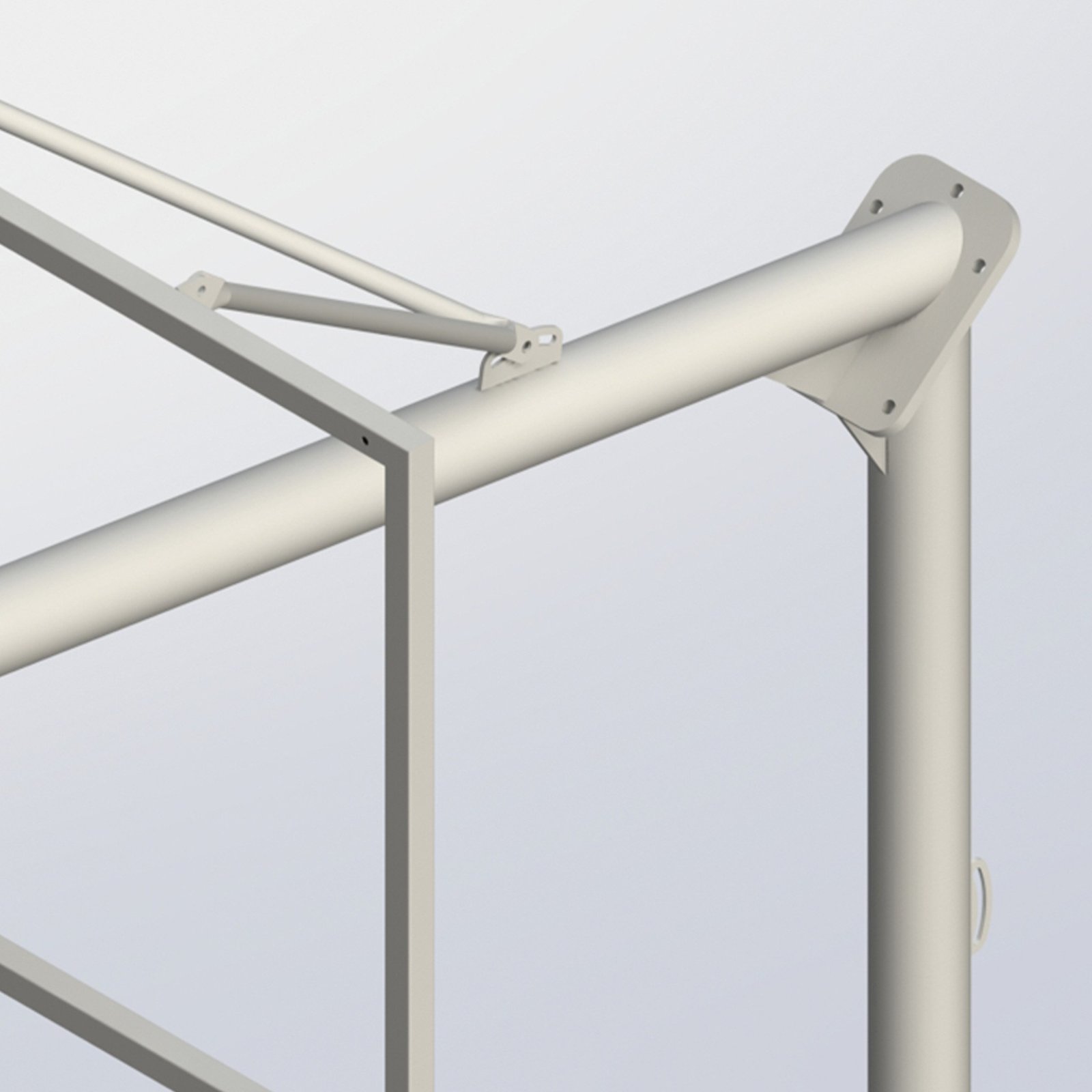 ANCLAR SIEMPRE AL SUELO. Juego de 2 canastas de sección redonda para empotrar al suelo mediante una base de anclaje (incluida). Ideal para pistas deportivas de exterior. Vuelo canastas 1,65 mts. Contiene doble sistema de tuercas de nivelación, tanto en soporte de tablero como en base de anclaje, incorpora también dos tirantes superiores de estabilización a las esquinas del tablero. Consulte las diferentes variedades de accesorios que permite, como aros, tableros, redes, protecciones varias.