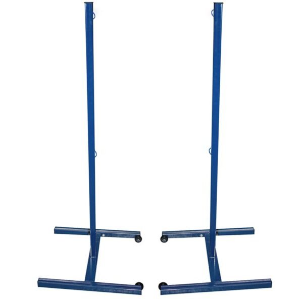 Juego de postes desmontables fabricados en tubo metálico de sección 35x35mm, provisto de 2 ruedas de nylon para facilitar su traslado.
