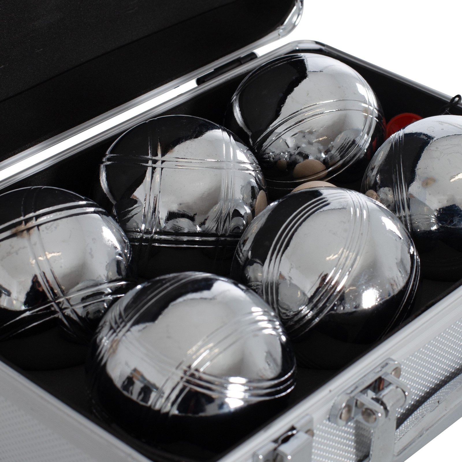 Compuesto por 6 bolas de acero cromado (3 bolas de 2 líneas y 3 bolas de 3 líneas) y un boliche. De cómodo agarre.