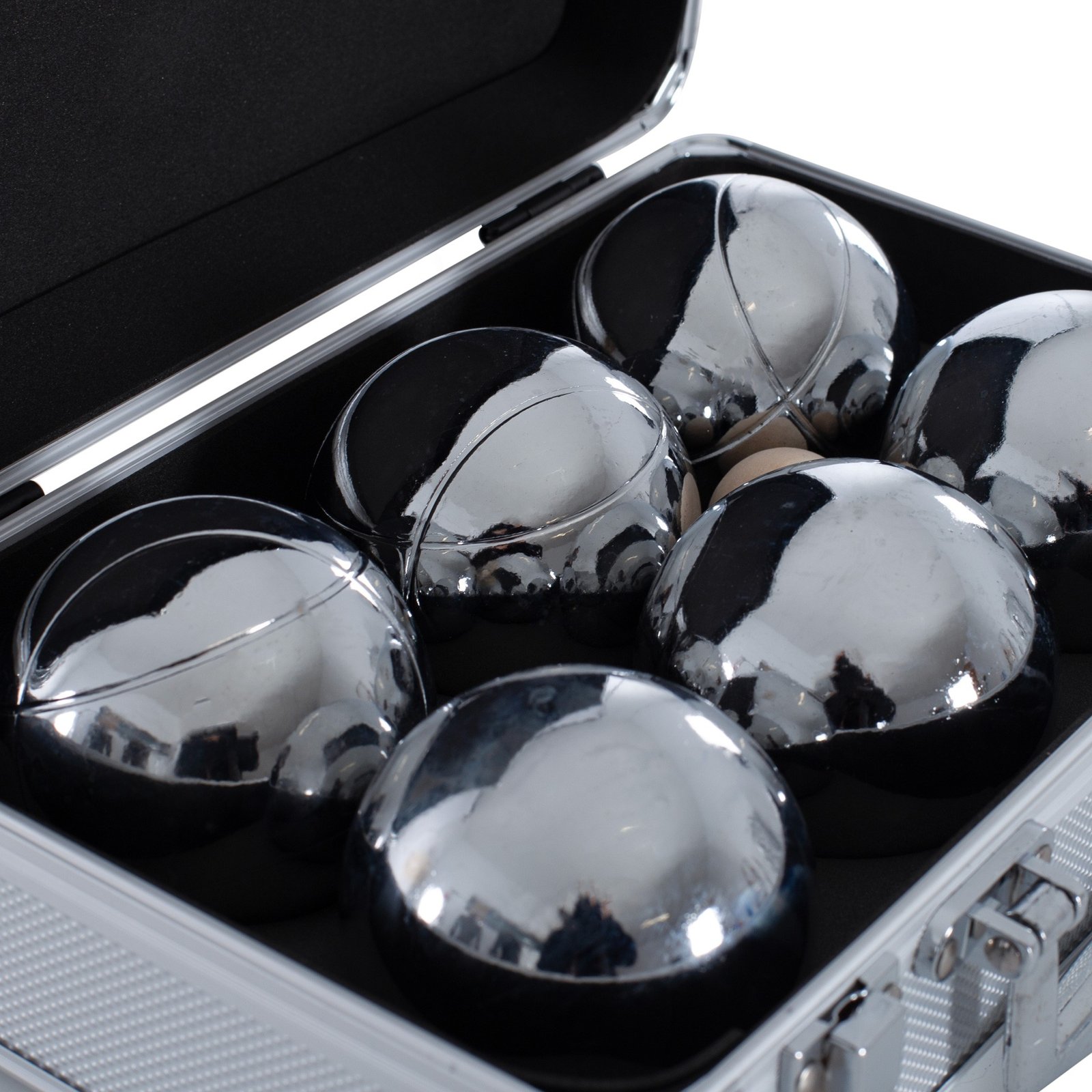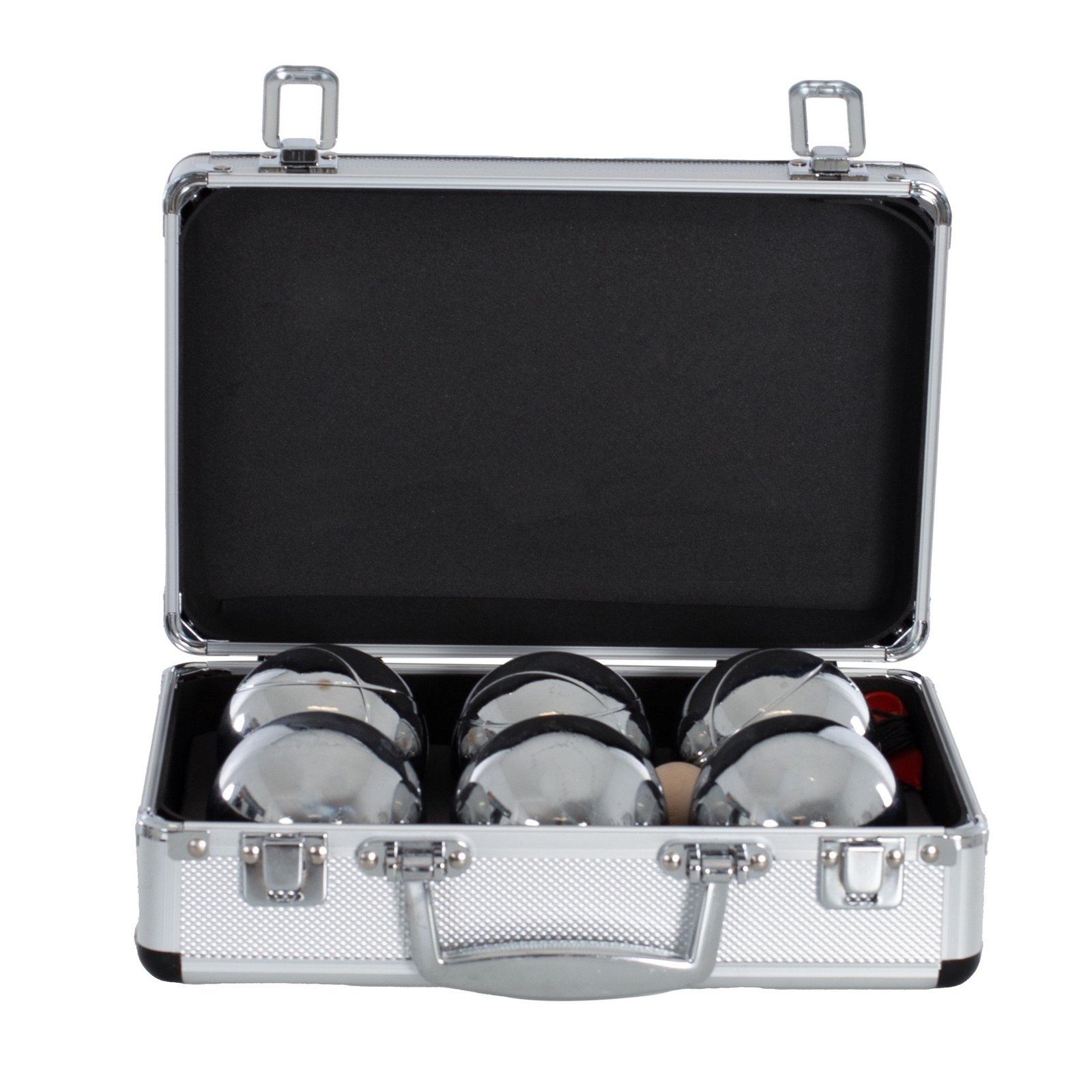 Compuesto por 6 bolas de acero cromado ( 3 de 0 líneas y 3 de 1 línea) y un boliche. De cómodo agarre.