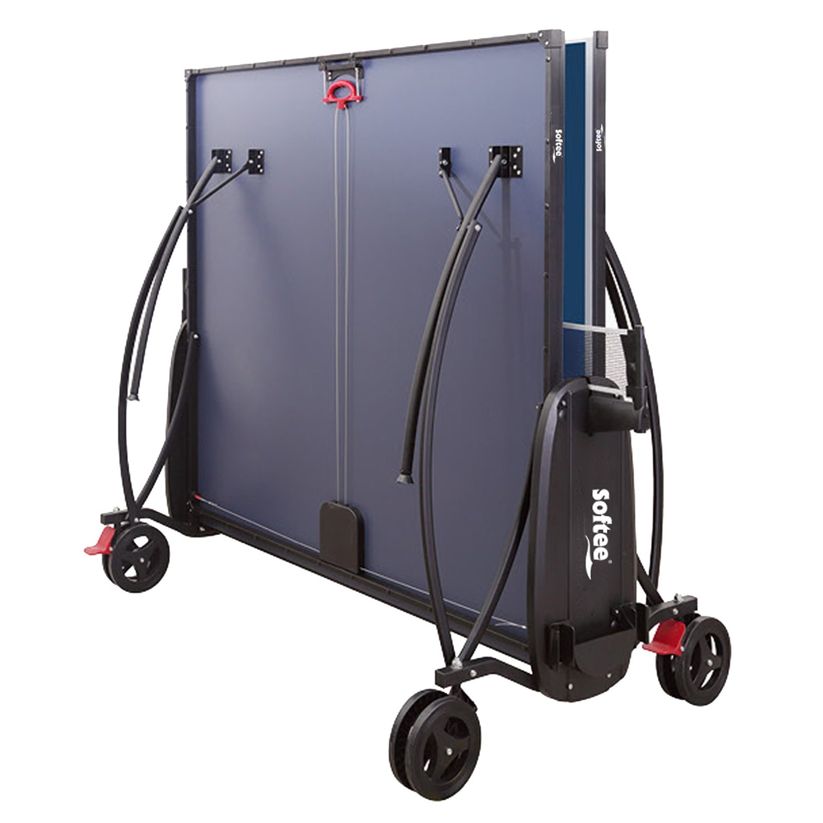 Mesa de tenis de mesa para interior con tablero de MDF de 15mm, marco de 15x30mm y soporte de 30x30mm. Incluye set de red y poste con sistema de fácil apertura y seguridad integral. Ruedas de plástico de 200mm de diámetro, con freno en 2 de ellas. Además, incluye un soporte para raquetas y pelotas, capacidad para 4 pelotas y 2 raquetas.