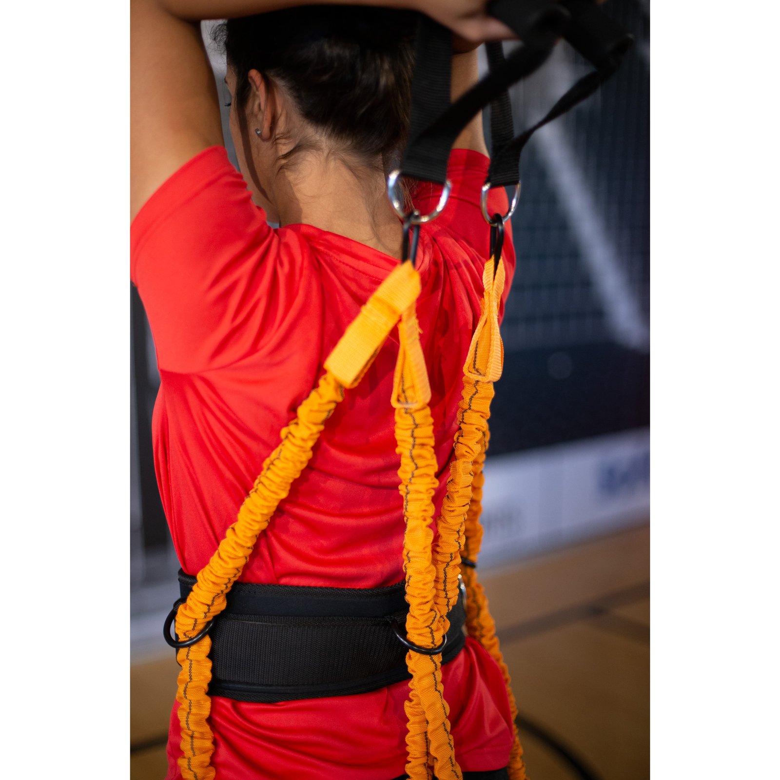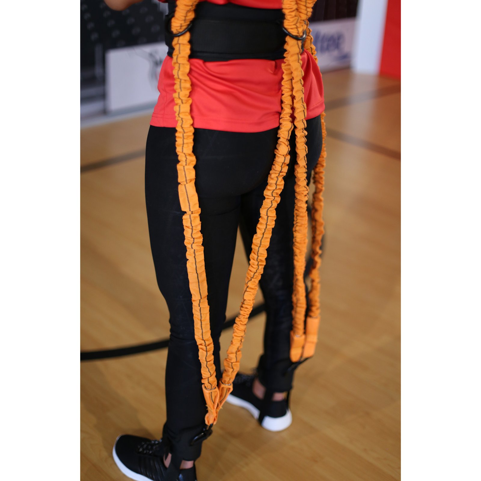 Material elástico, biomecánicamente ideal para trabajar la fuerza de las diferentes partes corporales, mientras se efectúan diferentes movimientos específicos de cualquier deporte.