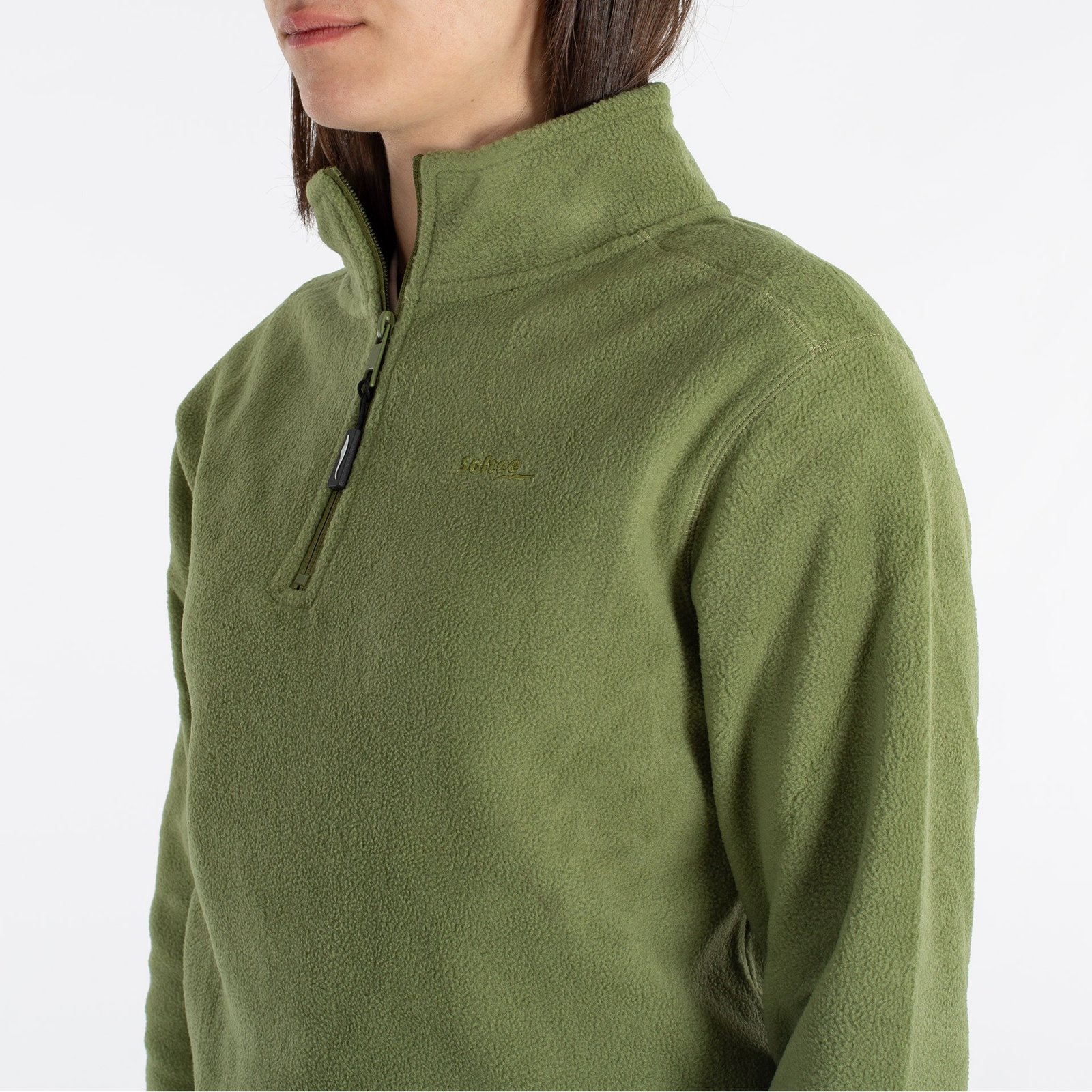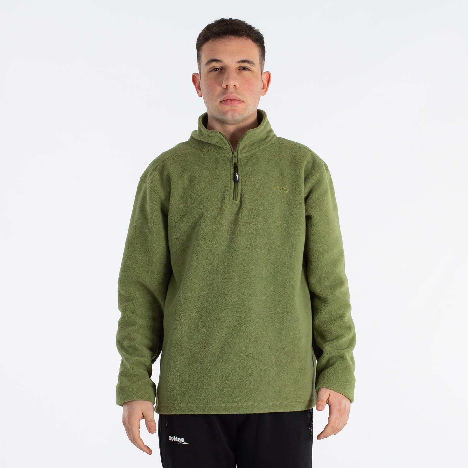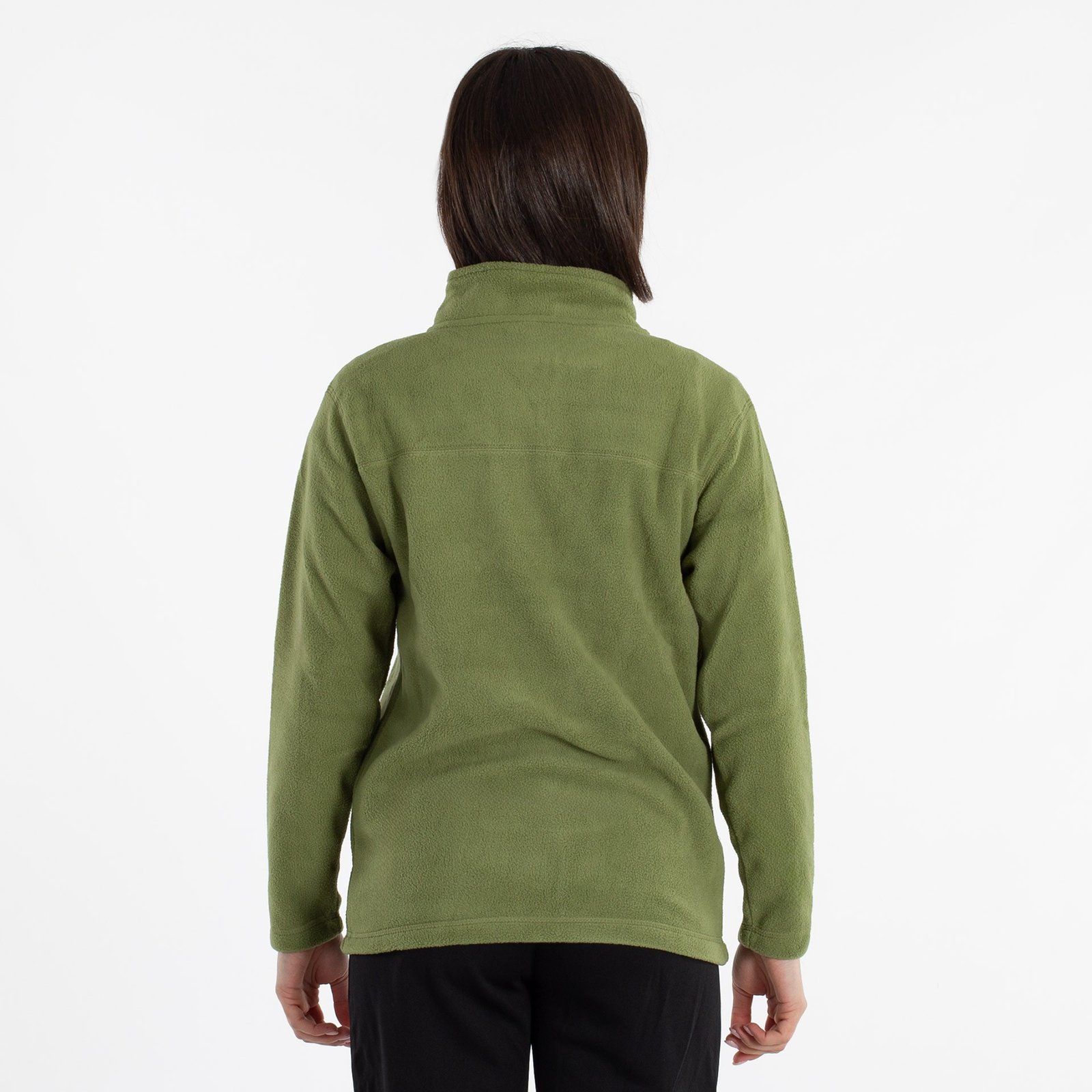 Forro polar de manga larga con cuello chimenea y cierre de media cremallera. Ideal para mantener el calor en climas fríos.