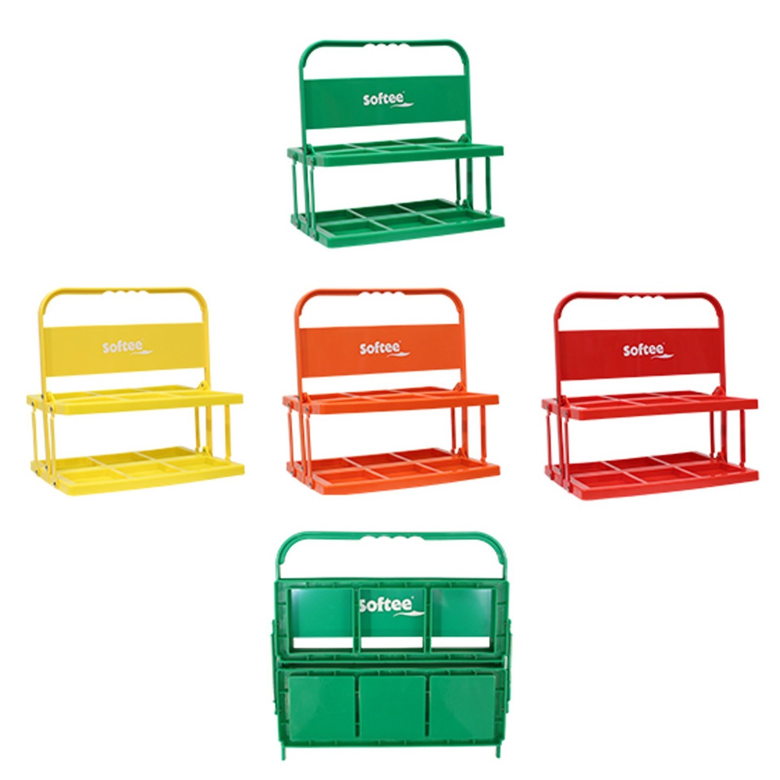 Portabotellas plegable con departamentos para 6 botellas de 1000ml. Medida plegado: 34,5x6x34,5cm. Con asa para su transporte. No incluye botellas. Medidas: 34,5×24,5×35,5cm.