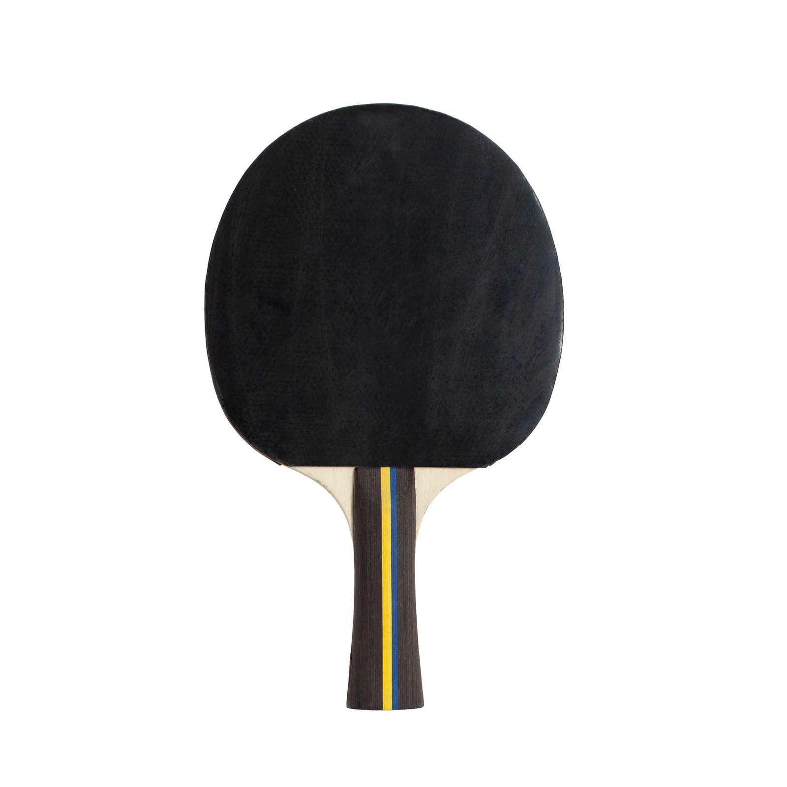 Raqueta de tenis de mesa con mango en madera y caras de goma lisas.