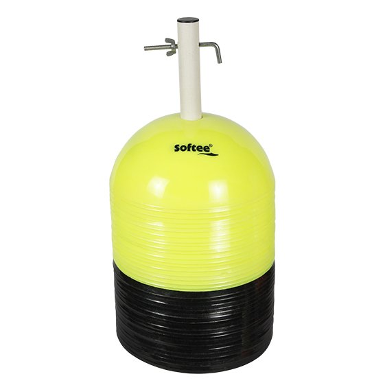 Set 40 conos chinos rígidos delimitador de entrenamientos y circuitos. Indicado para marcar zonas de ejercicios. 10 unidades por color. Diámetro: 20cm. Altura:7cm. Medidas: 19×39,5cm.