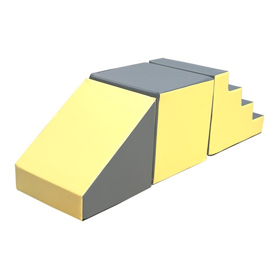 Set de figuras (escalera, cuadrado y rampa) fabricado en poliuretano de 20kg de densidad y recubierto de polipiel. Carro cremallera antilesión.