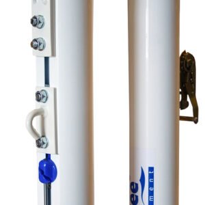 Silla fabricada en acero con asiento de PVC y repisa de madera abatible para anotaciones. Muy estable gracias a su estructura. La altura hasta el asiento es de 175cm.