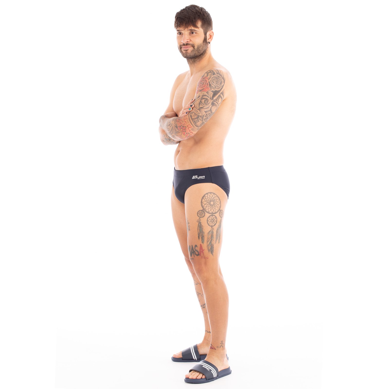 Slip básico de la línea principal de Squba. Este bañador cuenta con un diseño tradicional e hidrodinámico que aporta una excelente sujeción a quién lo lleva puesto. Gran resistencia al cloro y de fácil secado. Ideal para la práctica habitual de la natación en piscina o en exterior. Composición del forro: 100% Poliamida. Tallas: S, M, L, XL, XXL.