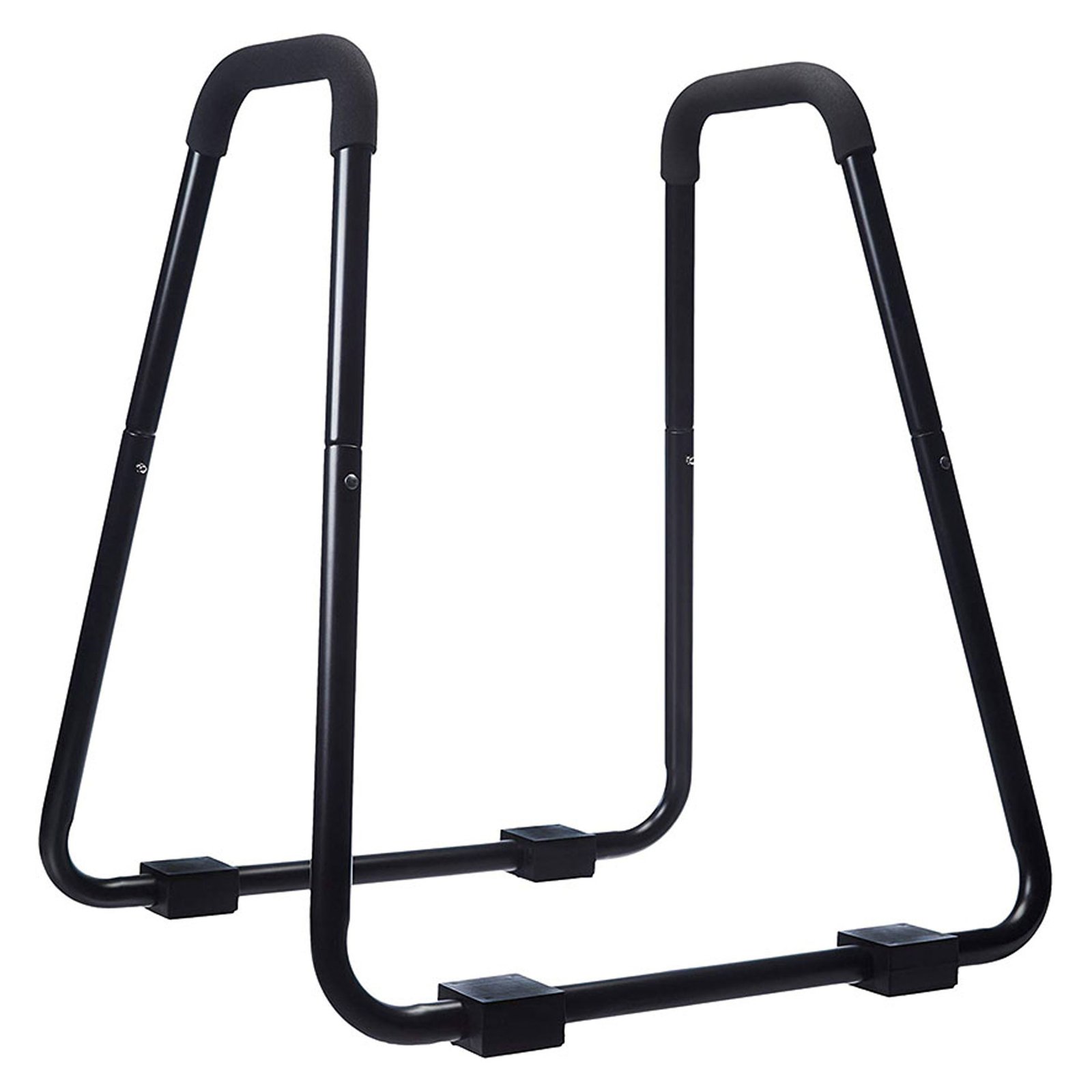 Aparato multifunción para la realización de ejercicios de auto-carga. Muy eficaz en el trabajo de fortalecimiento del tren superior en ejercicios de dominadas inclinadas y fondos. Incluye dos zonas de agarre acolchadas para mejorar dicha zona. Fácil de transportar. Cuenta con un sistema de apoyo de cuatro bases con neopreno para evitar el deslizamiento durante el ejercicio. Se entrega desmontado con herramientas para el montaje. Anchura superior: 30cm. Hueco entre barras: 60cm ALto: 95cm. Anchura inferior: 72cm